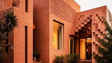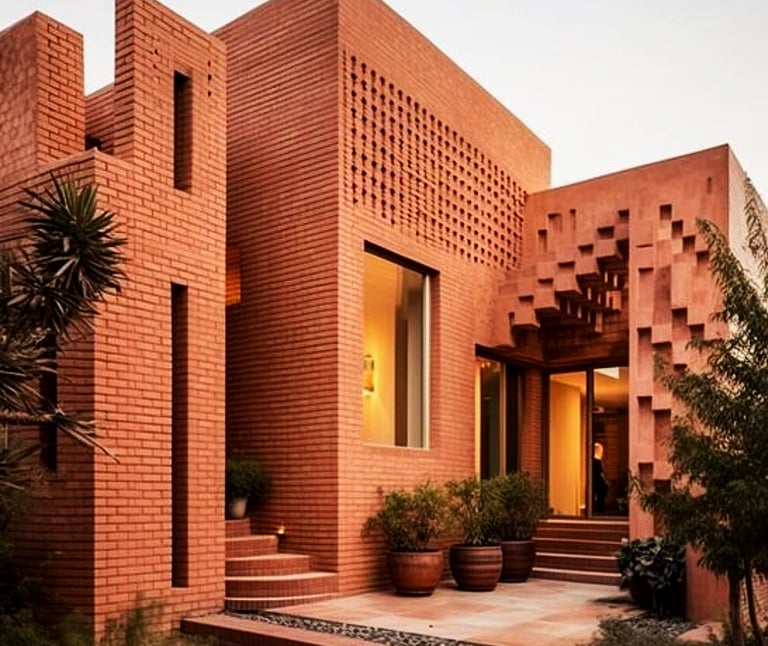 Un acogedor hotel en la playa con desierto, donde los colores de terracota crean un ambiente único para su descanso y disfrute.